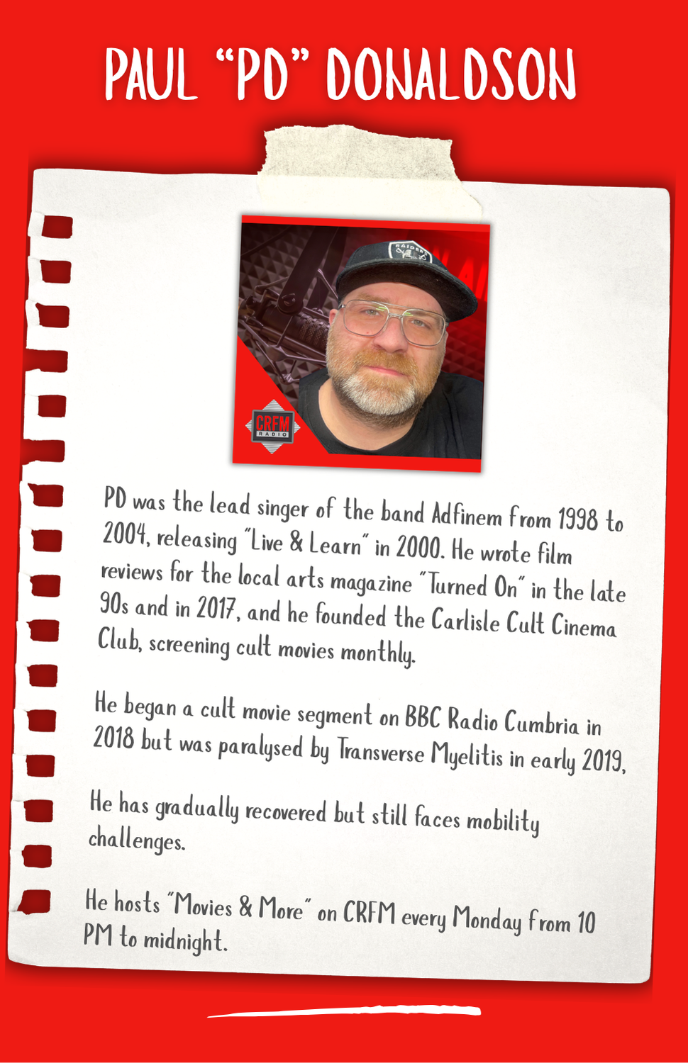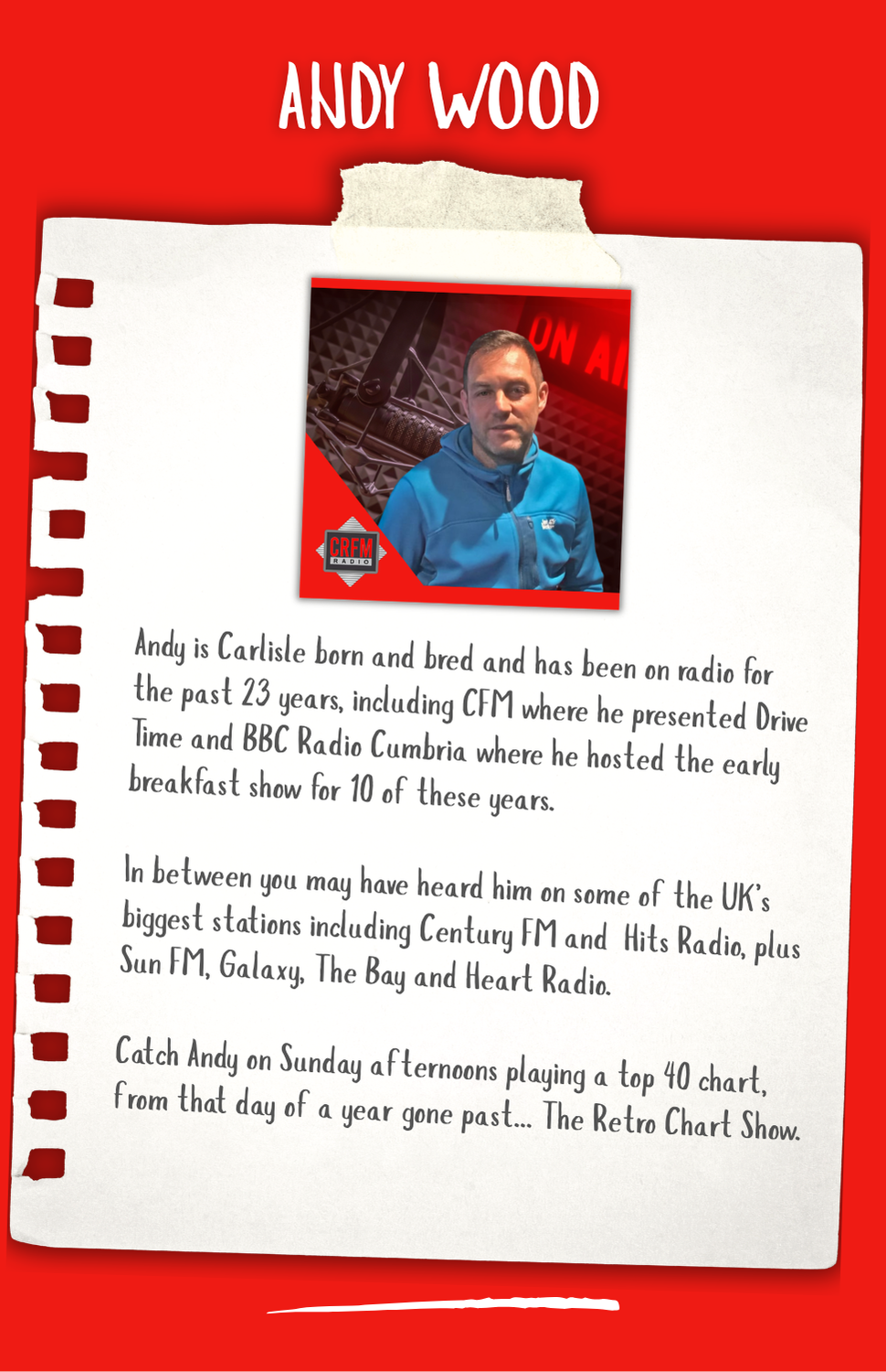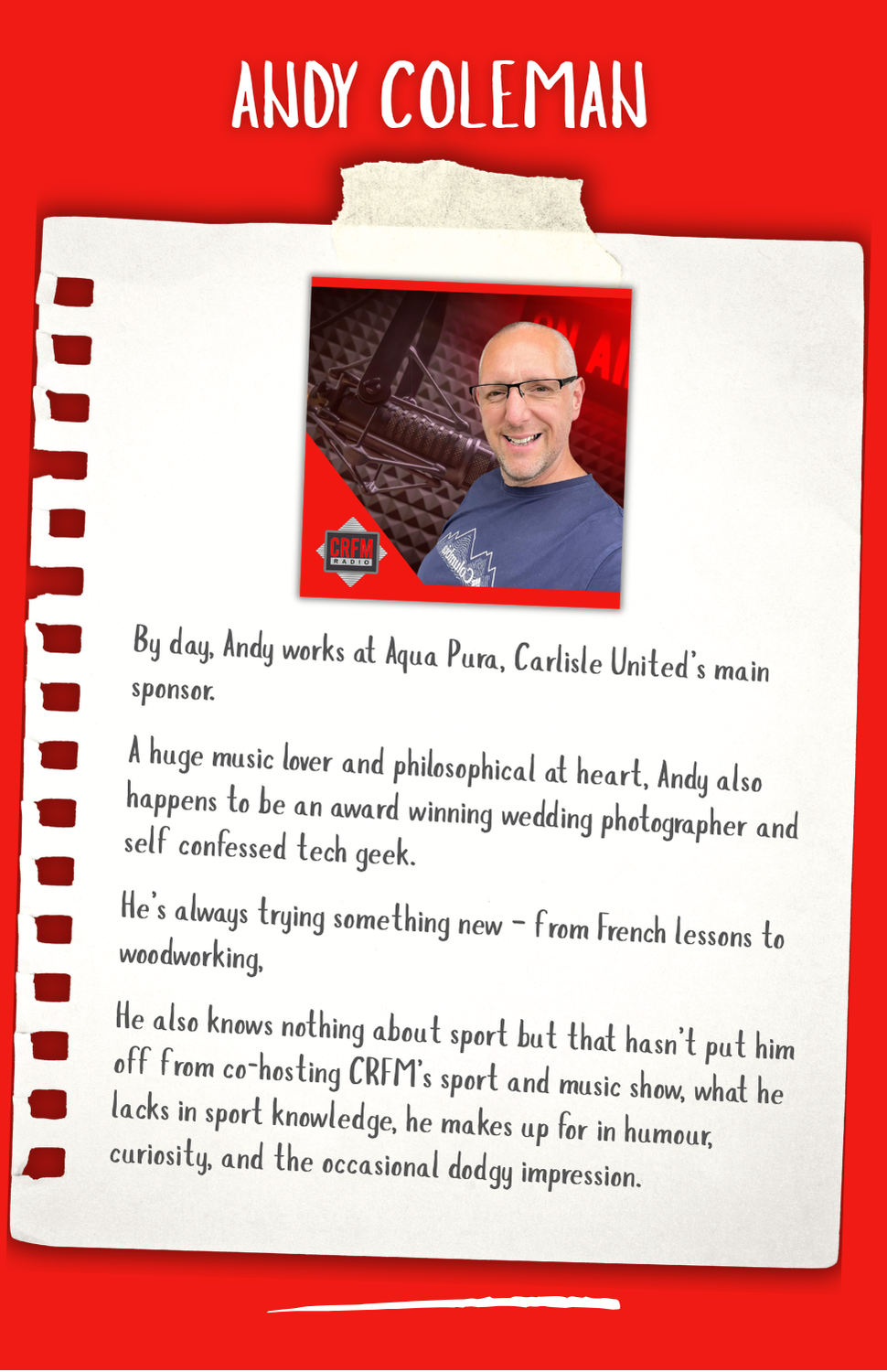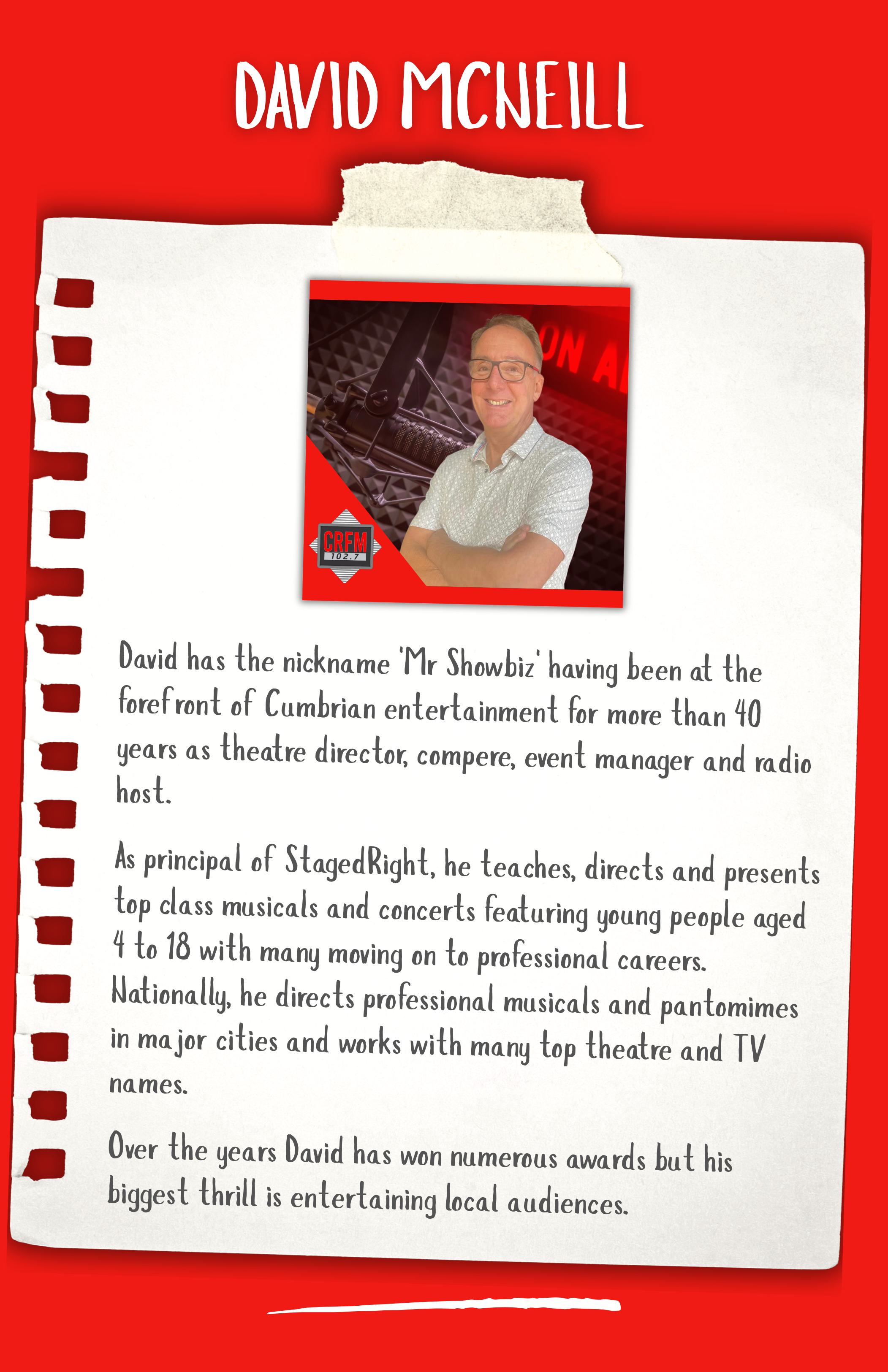 Hi my name is Darrell Thomas, I came to Cumbria in 1993 to assist with the launch of CFM Radio with John Myers. I then ran the station for 7 years before going off around the country to run a further 4 radio stations as well as one in Spain. I also was Deputy Advertising Director for Cumbrian Newspapers and although I have travelled a fair bit, I kept my home here in Carlisle knowing I would return one day. In Early 2023 I was asked to join the team and head up the launch of CRFM which was a no brainer. So here we are, a successful Community Radio station in the heart of the City of Carlisle. CRFM is growing from strength to strength - who knows what the future holds ...
