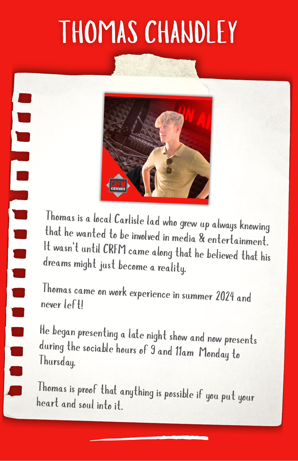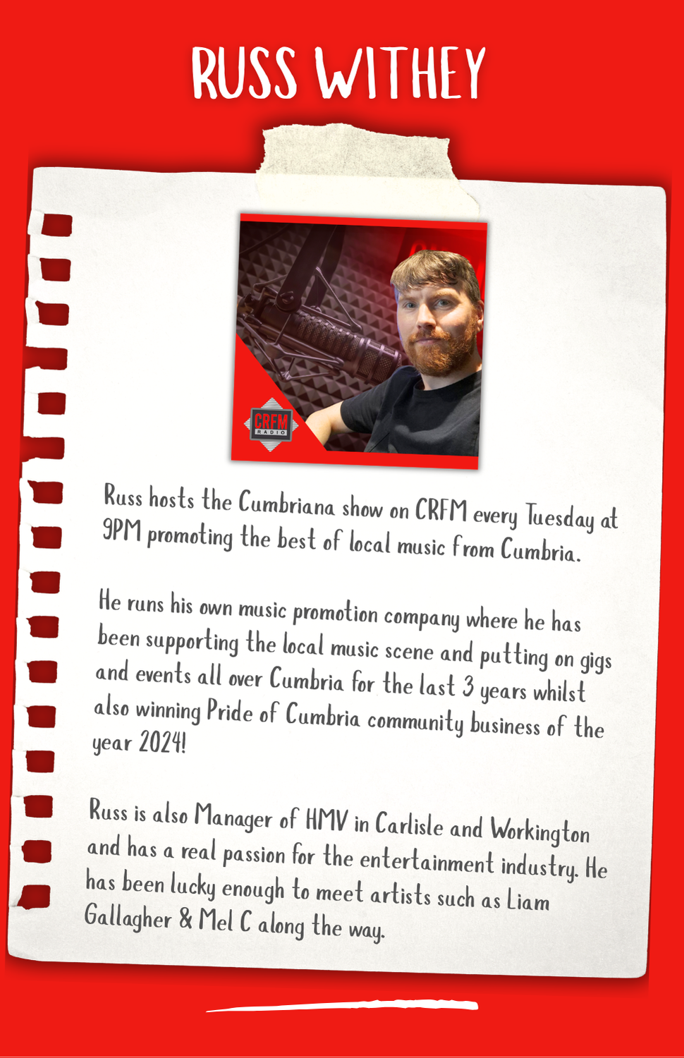 Hi I'm Sales Director at Carlisle's local station Your Better Music Mix CRFM.
